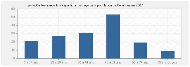 - Population de Collanges de 45 à 59 ans : 53 habitants