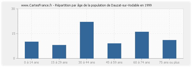 - Population de Dauzat-sur-Vodable de 30 à 44 ans : 22 habitants