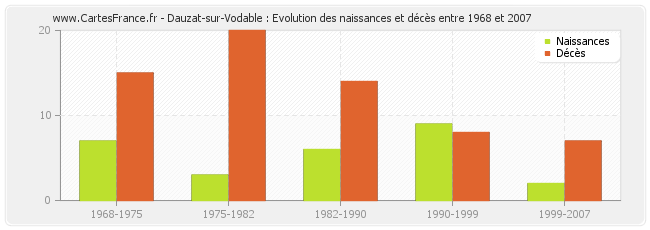 Dauzat-sur-Vodable : évolution des naissances et décès de 1968 à 2007