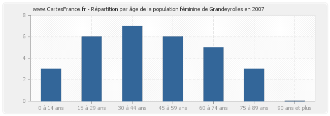 Répartition de la population féminine de Grandeyrolles par âge en 2007 :
