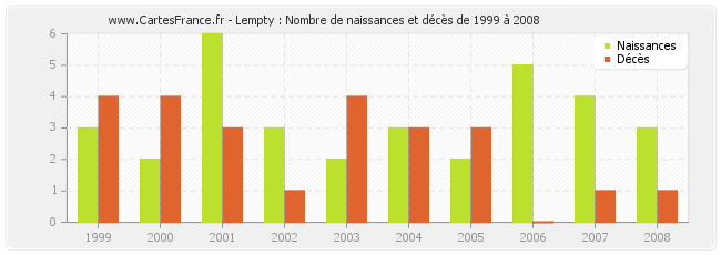 Lempty : évolution des naissances et décès de 1968 à 2007