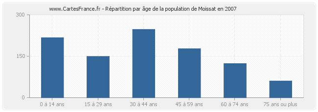 - Population de Moissat de 30 à 44 ans : 247 habitants
