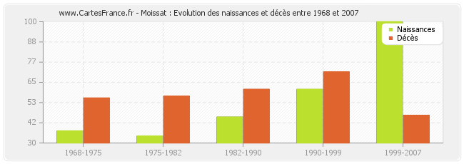 Moissat : évolution des naissances et décès de 1968 à 2007