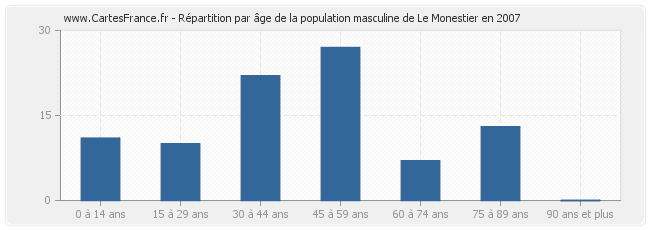 Répartition de la population masculine de Le Monestier par âge en 2007 :