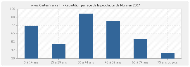 - Population de Mons de 30 à 44 ans : 93 habitants