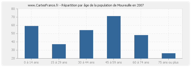- Population de Moureuille de 45 à 59 ans : 71 habitants