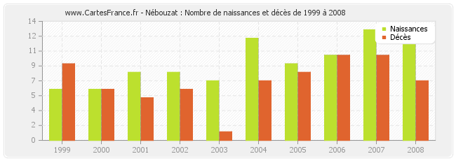 - Nébouzat en 2008 : 13 naissances et 7 décès