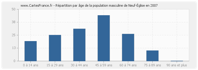 - Hommes de 45 à 59 ans habitant Neuf-Église : 44
