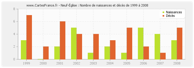 - Neuf-Église en 2008 : 3 naissances et 5 décès