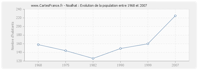 La population de Noalhat était de 225 habitants en 2007, 160 habitants en 1999, 149 habitants en 1990, 126 habitants en 1982, 144 habitants en 1975 et 158 habitants en 1968.