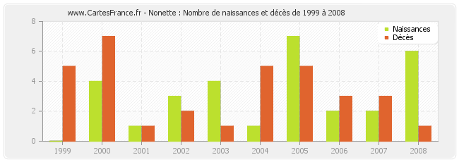 Nonette : naissances et décès de 1999 à 2008