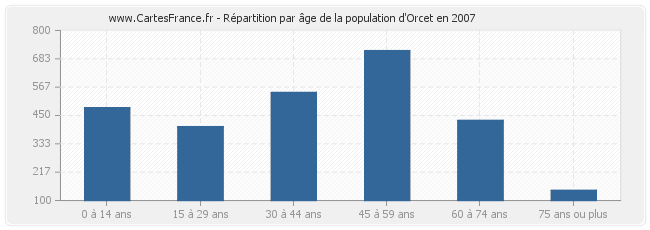- Population d'Orcet de 45 à 59 ans : 717 habitants