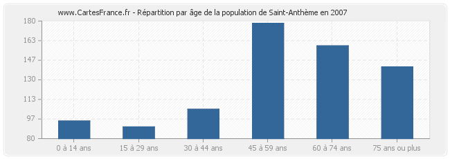 - Population de Saint-Anthème de 60 à 74 ans : 159 habitants