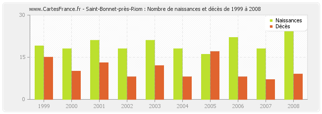 - Saint-Bonnet-près-Riom en 1999 : 19 naissances et 15 décès