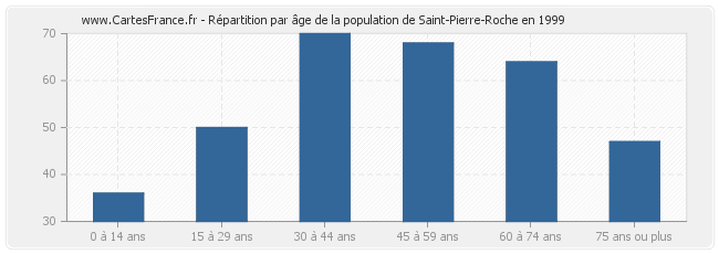 - Population de Saint-Pierre-Roche de 30 à 44 ans : 70 habitants
