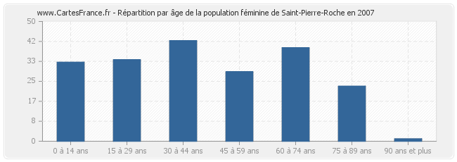 Répartition de la population féminine de Saint-Pierre-Roche par âge en 2007 :