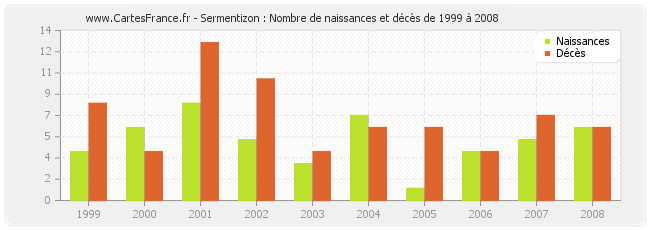 - Sermentizon en 2005 : 1 naissances et 6 décès