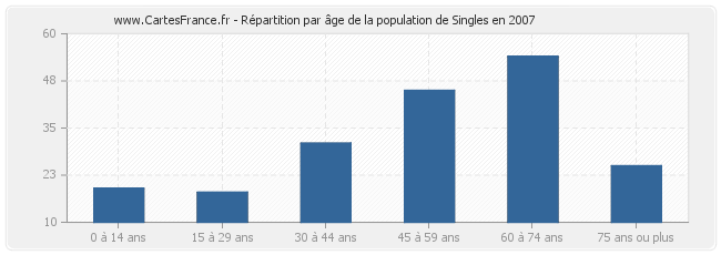 - Population de Singles de 60 à 74 ans : 54 habitants