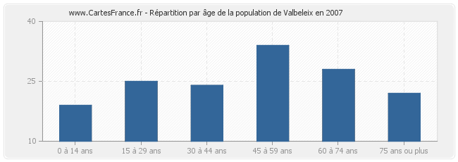 - Population de Valbeleix de 45 à 59 ans : 34 habitants