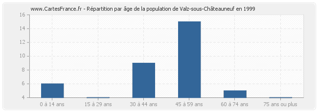 - Population de Valz-sous-Châteauneuf de 45 à 59 ans : 14 habitants