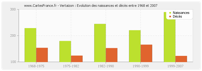 Vertaizon : évolution des naissances et décès de 1968 à 2007