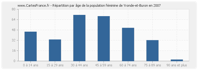 Répartition de la population féminine de Yronde-et-Buron par âge en 2007 :