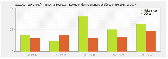 Yssac-la-Tourette : évolution des naissances et décès de 1968 à 2007