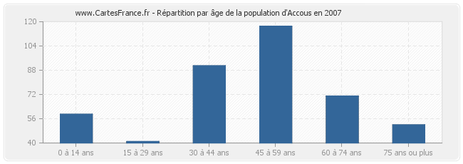 - Population d'Accous de 45 à 59 ans : 117 habitants