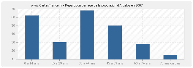 - Population d'Argelos de 75 ans ou plus : 15 habitants