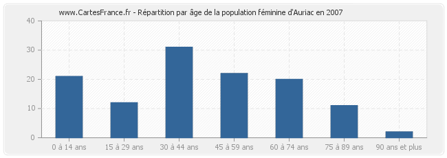Répartition de la population féminine d'Auriac par âge en 2007 :