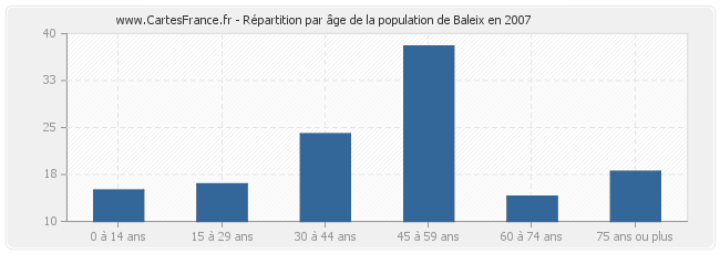 - Population de Baleix de 45 à 59 ans : 38 habitants