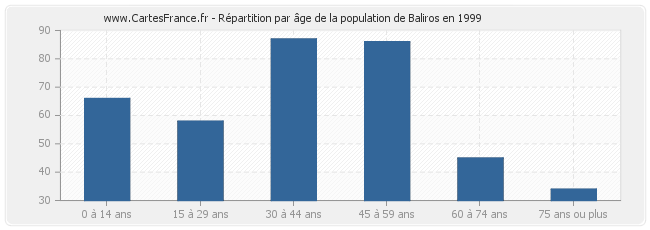 - Population de Baliros de 30 à 44 ans : 87 habitants