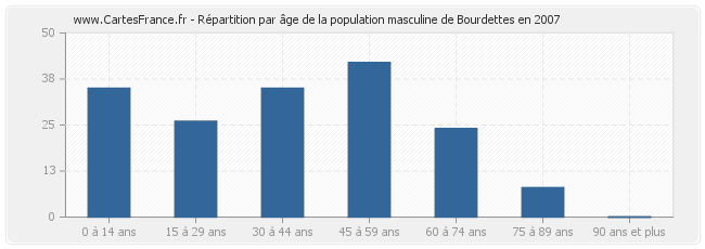 Population masculine de Bourdettes en 2007