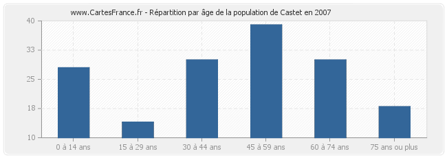 - Population de Castet de 45 à 59 ans : 39 habitants