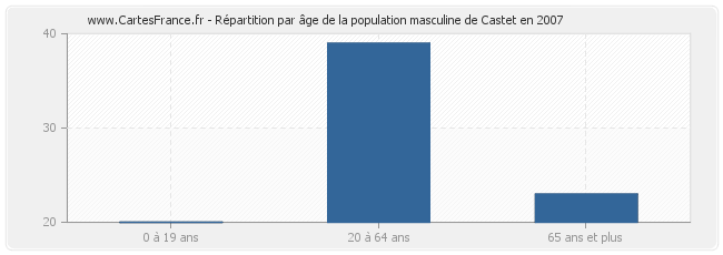 - Hommes de 20 à 64 ans habitant Castet : 39
