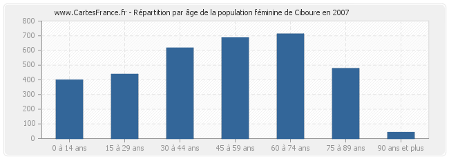 - Femmes de 45 à 59 ans habitant Ciboure : 686