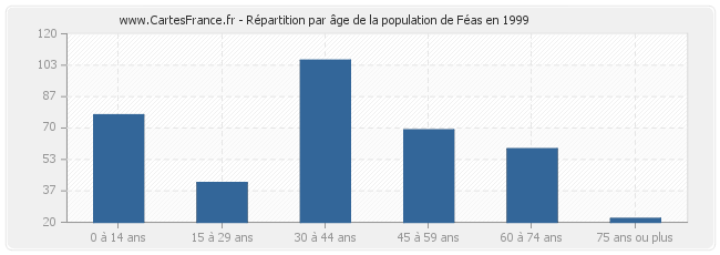 Répartition de la population de Féas par âge en 1999 :