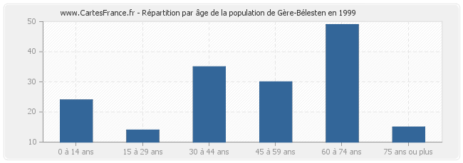 - Population de Gère-Bélesten de 60 à 74 ans : 49 habitants
