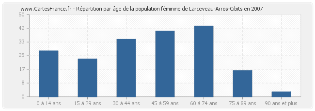 Répartition de la population féminine de Larceveau-Arros-Cibits par âge en 2007 :