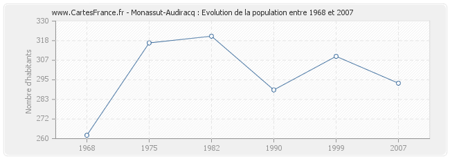 - Population de Monassut-Audiracq en 2007 : 293 habitants