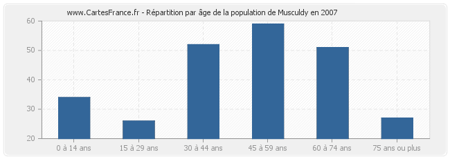 - Population de Musculdy de 45 à 59 ans : 59 habitants