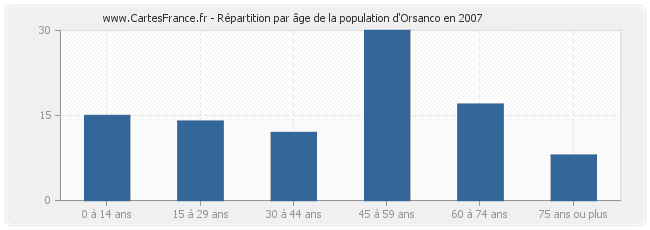 - Population d'Orsanco de 45 à 59 ans : 30 habitants