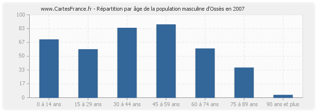 Répartition de la population masculine d'Ossès par âge en 2007 :