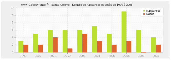 Sainte-Colome : naissances et décès de 1999 à 2008