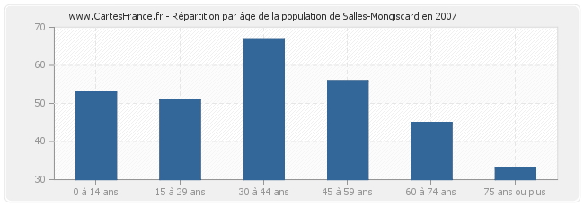 - Population de Salles-Mongiscard de 30 à 44 ans : 67 habitants