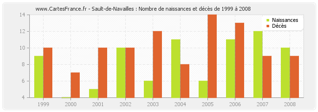 Sault-de-Navailles : naissances et décès de 1999 à 2008