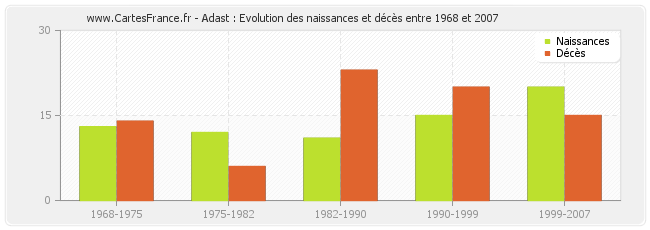 - Population d'Adast de 15 à 29 ans : 30 habitants