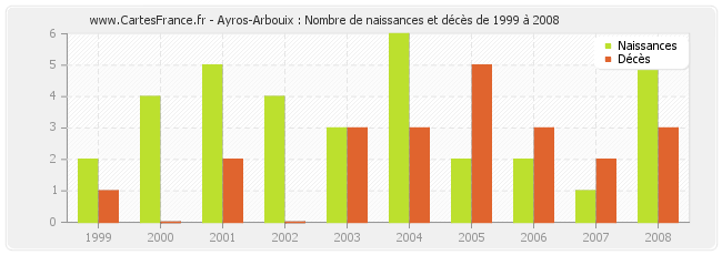 Ayros-Arbouix : naissances et décès de 1999 à 2008