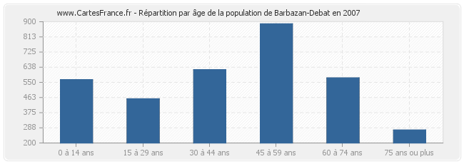- Population de Barbazan-Debat de 45 à 59 ans : 888 habitants