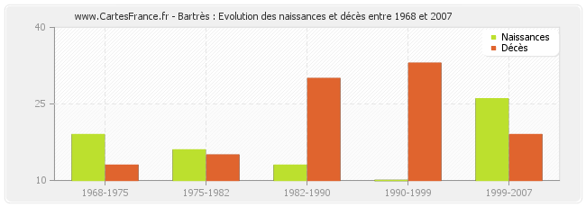 Bartrès : évolution des naissances et décès de 1968 à 2007